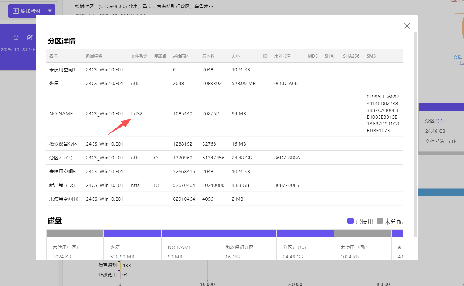 1.[填空题] 对计算机镜像进行分析,计算该镜像中ESP分区的SM3值后8位为?(答案格式:大写字母与数字组合,如:D23DDF44)(2分)