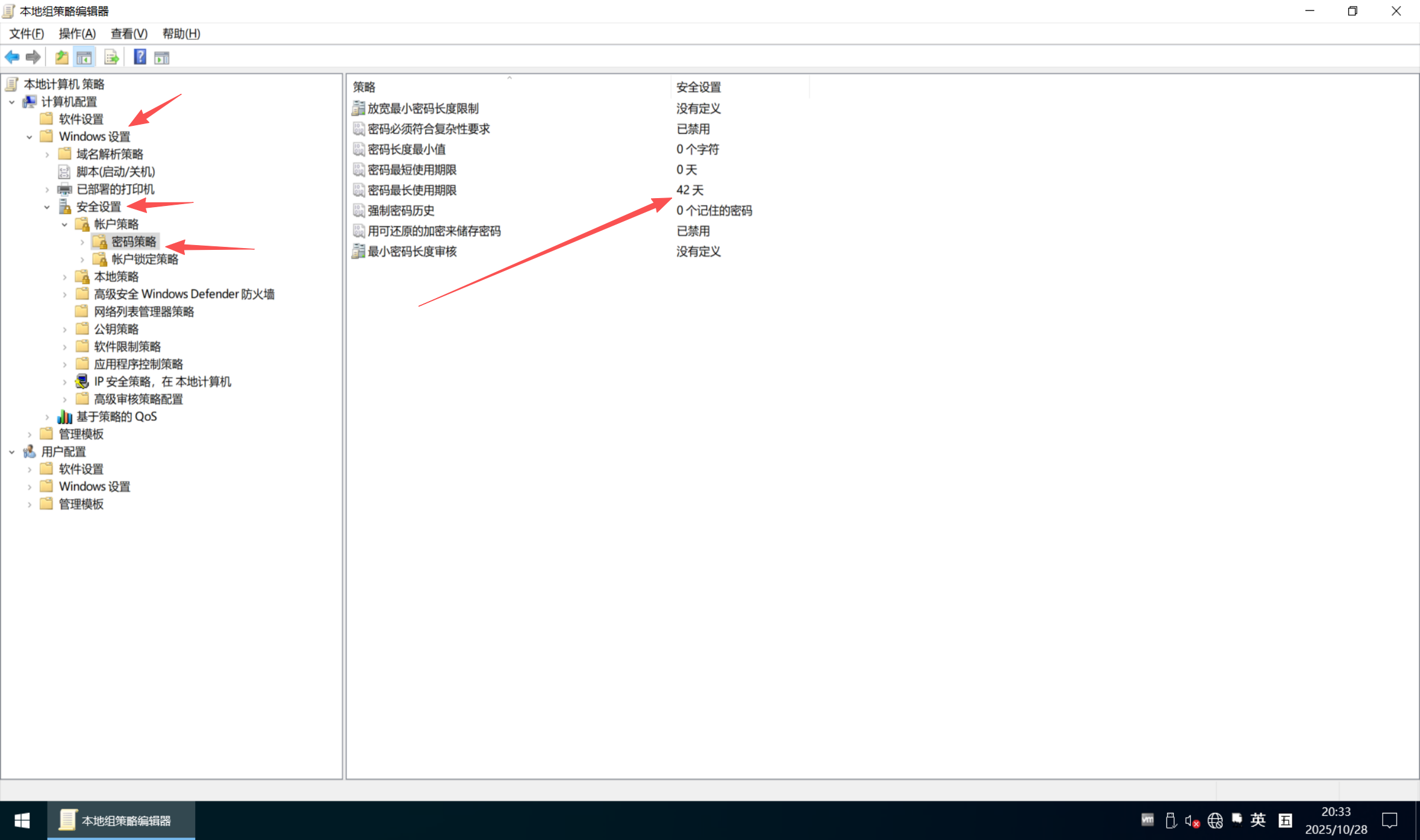4.[填空题] 对计算机镜像进行分析,该操作系统设置的账户密码最长存留期为多少天?(填写数字,答案格式如:1234)(2分)