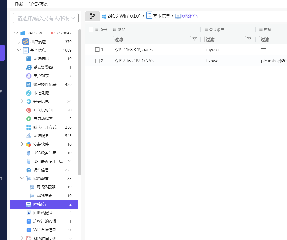 8.[填空题] 对计算机镜像进行分析,该操作系统配置的连接NAS共享文件夹的IP地址为?(答案格式:127.0.0.1)(2分)