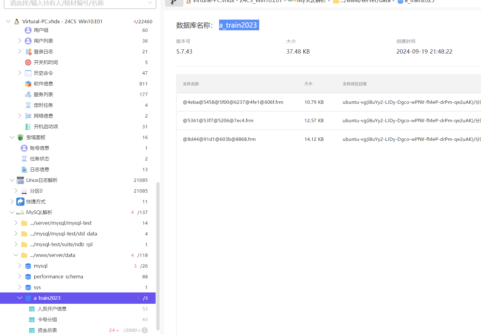 22.[填空题] 对计算机镜像进行分析,机主搭建的宝塔面板中Mysql环境连接的端口号为?(填写数字,答案格 式如:1234)(2分)