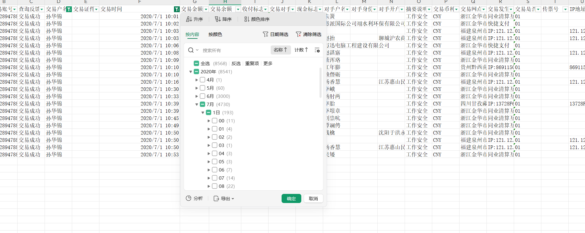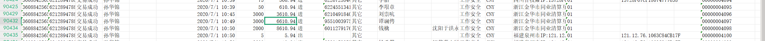 24.[填空题]接上题,“孙华锦”在2020-07-01 10:49:07时间节点的交易余额为?(答案格式:1234.56)(4分)