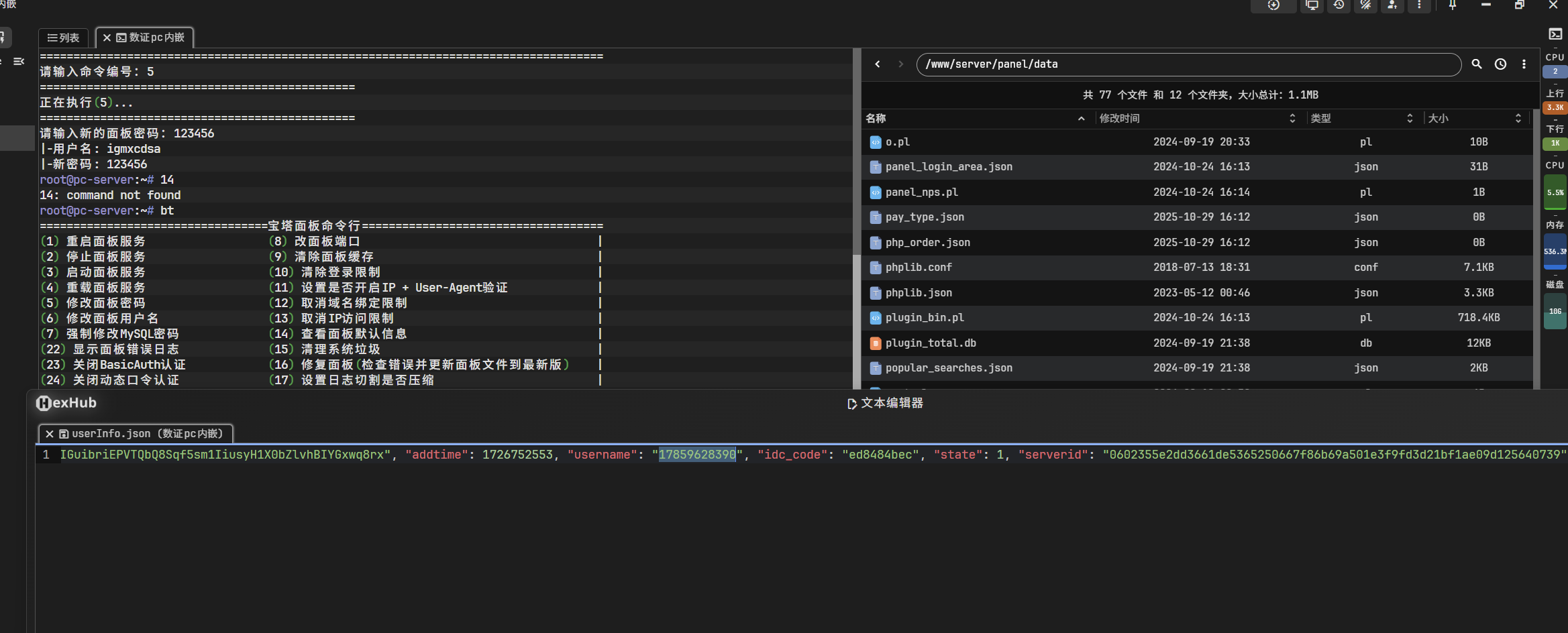别人是在/www/server/panel/data/userinfo.json里面找到的