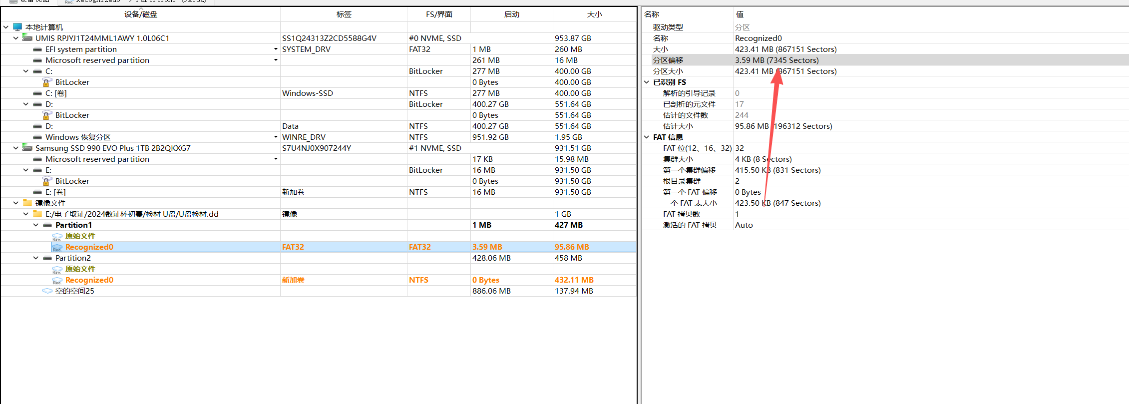 扫描整个磁盘再看对应的分区,