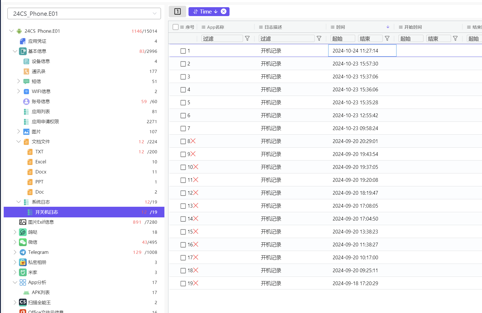 4.[填空题】对手机镜像进行分析,该手机中记录的最后一次开机时间。(答案格式如:1970-01-01 00:00:00)(2分)