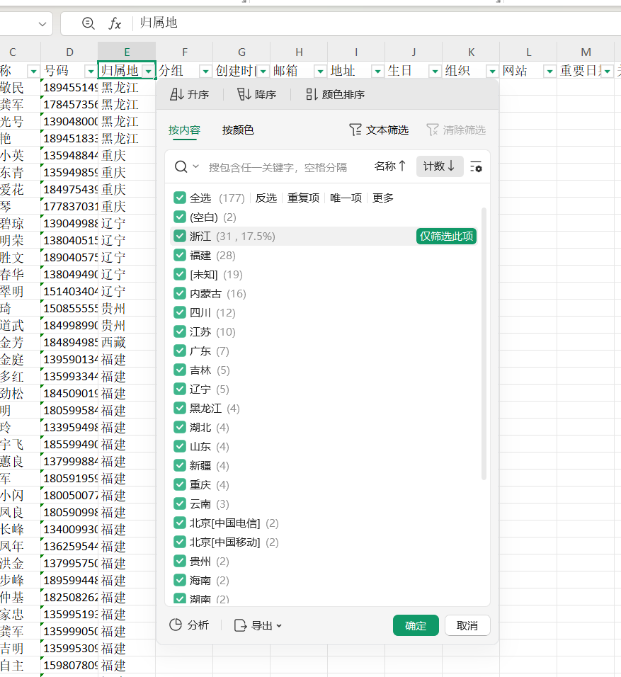 10.[填空题] 对手机镜像进行分析,统计出通讯录号码归属地第二多的省份是?(答案格式:广东)(4分)