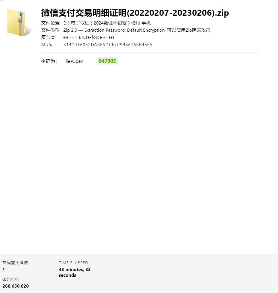 7.[填空题] 对手机镜像进行分析,其中20220207-20230206的微信账单文件的解压密码为?(答案格式:按实际值填写)(2分)