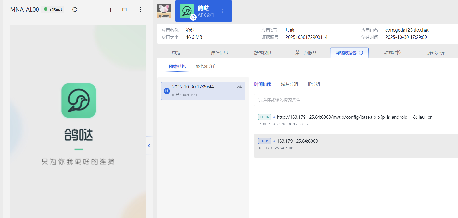 13.对手机镜像进行分析,机主使用的小众即时通讯应用使用的服务器IP为?(答案格式:127.0.0.1) (2分)
