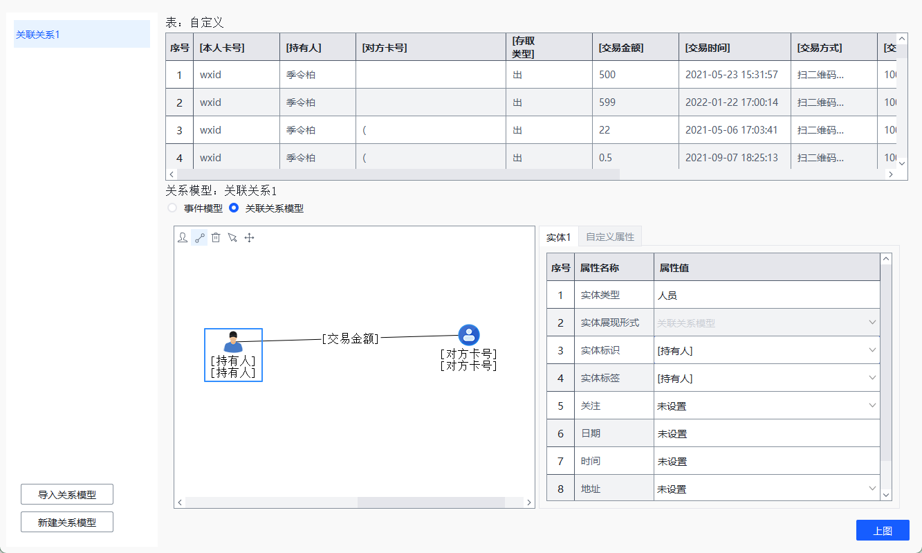 导入火眼,筛选“进”,建立关系上图: